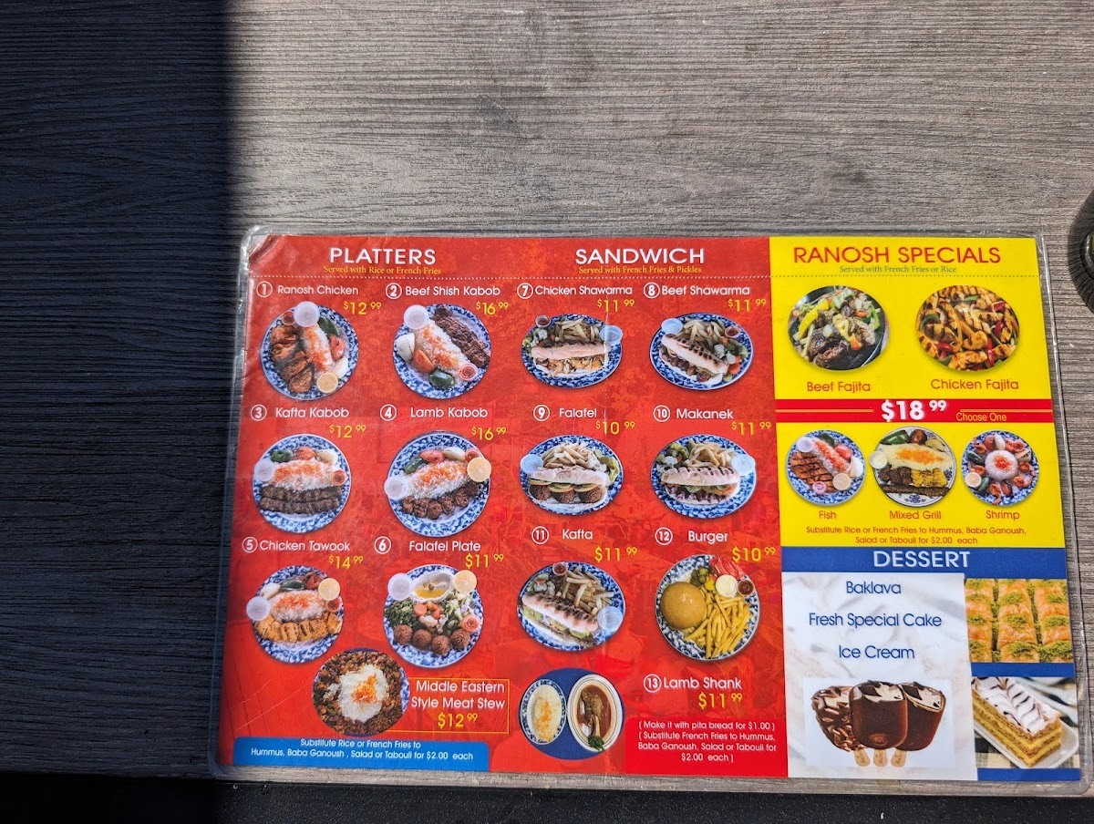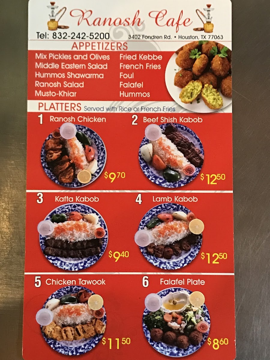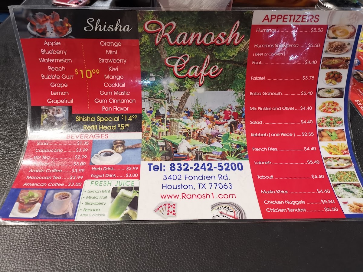 Welcome to Ranosh Cafe, a delightful haven situated at 3402 Fondren Rd, Houston. This café offers an inviting atmosphere, perfect for families and friends looking to relax or enjoy a mouth-watering meal together. The menu is a treasure trove of Middle Eastern flavors, featuring tantalizing dishes like Ranosh Chicken and Lamb Kabob, with platters designed for both indulgence and sharing.